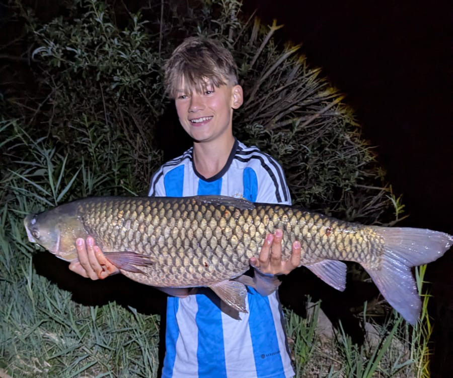Elian fing im Juli einen riesen Graskarpfen.