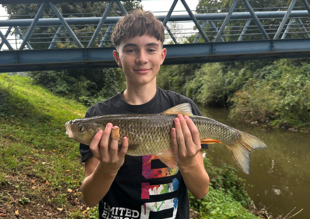Joel konnte eine schöne Barbe an der Rems fangen, Petri.